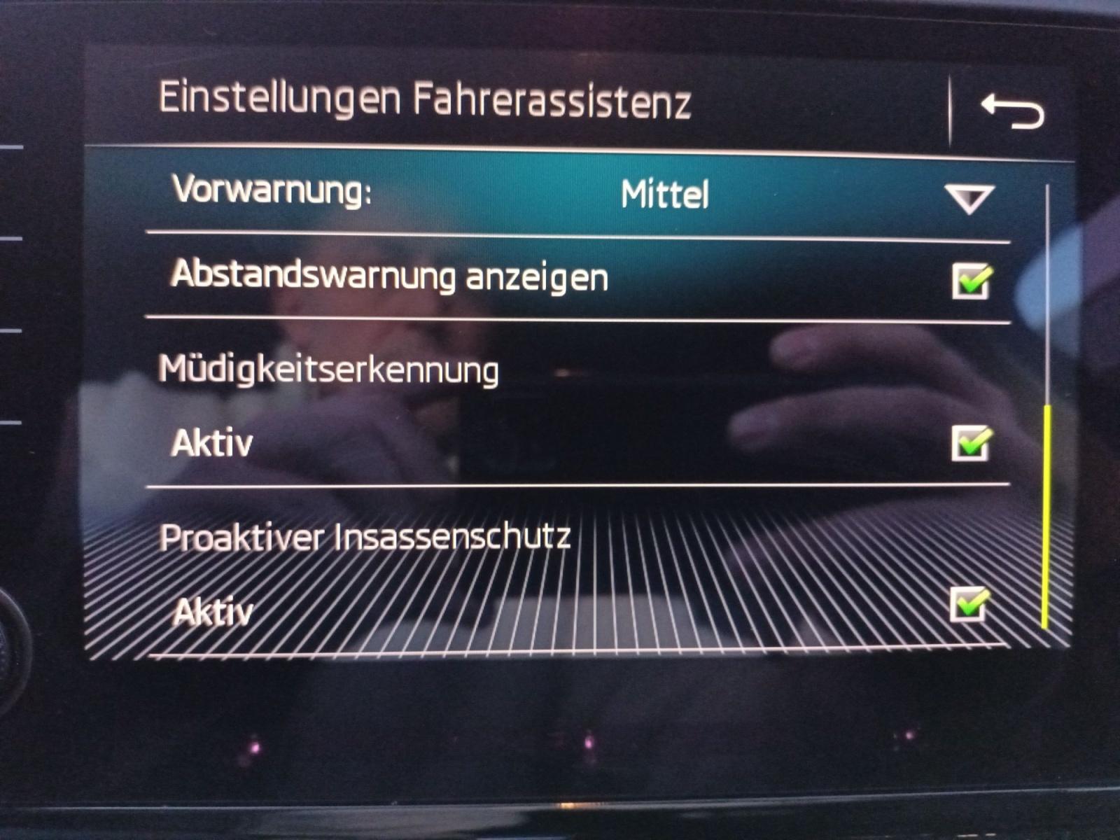 • Assistenzsysteme Regensensor, Notbremsassistent (City-Safety), Berganfahrassistent, Abstandstempomat adaptiv (ACC), Müdigkeitserkennungs-Sensor, Sprachassistent, Abstandswarner